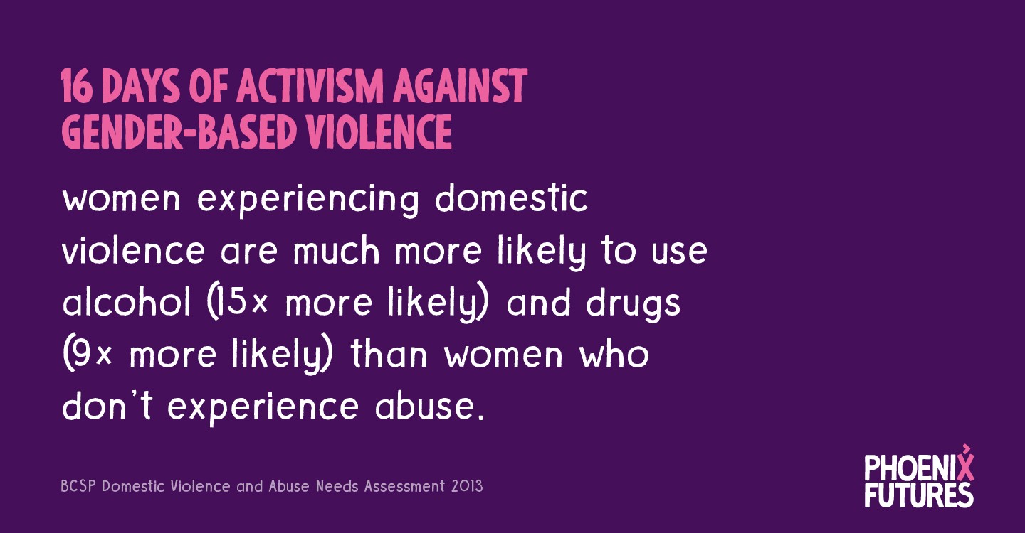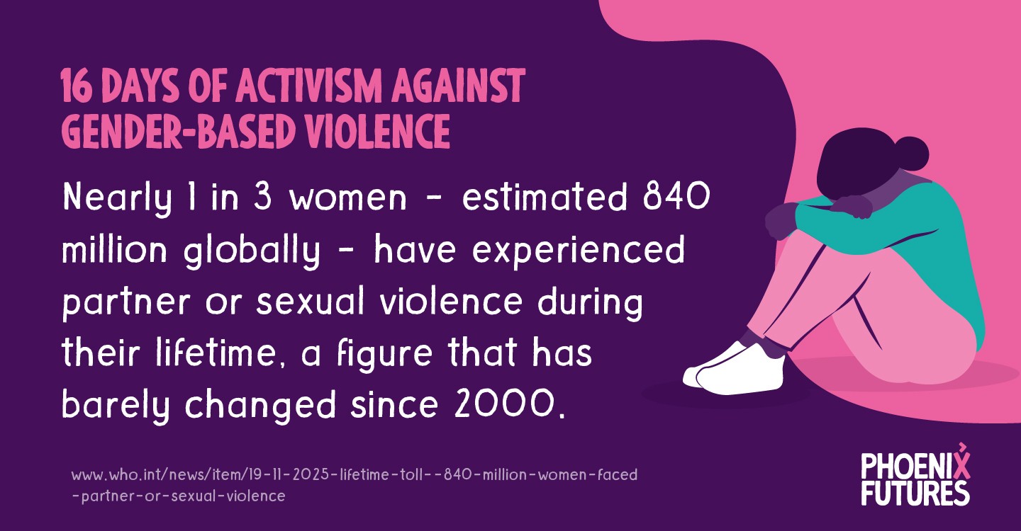 Every year, the 16 Days of Activism Against Gender-Based Violence calls on people around the world to stand together to end violence against women and girls. At Phoenix, this issue is deeply connected to the women we support. More than 65% of the women in our residential services, many of them mothers, have experienced physical, emotional, or sexual violence. Drugs and alcohol have been a way to cope with these life-changing and debilitating experiences that no one should ever have to face.